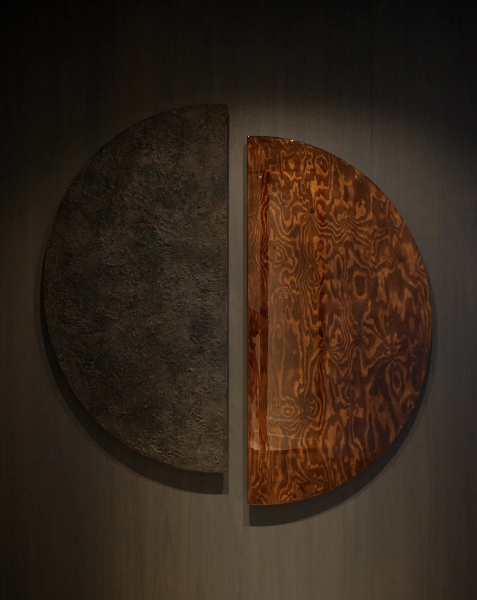 Two distant, yet inseparable forces, slowly aligning to become one. Inspired by the quiet tension of an eclipse. An eclipse captures the moment when opposites meet in perfect balance. Formed from two half-moon shapes, the piece speaks to connection, duality, and the beauty of becoming whole. Created using sand from Bali, it carries with it the energy of stillness, earth, and time.